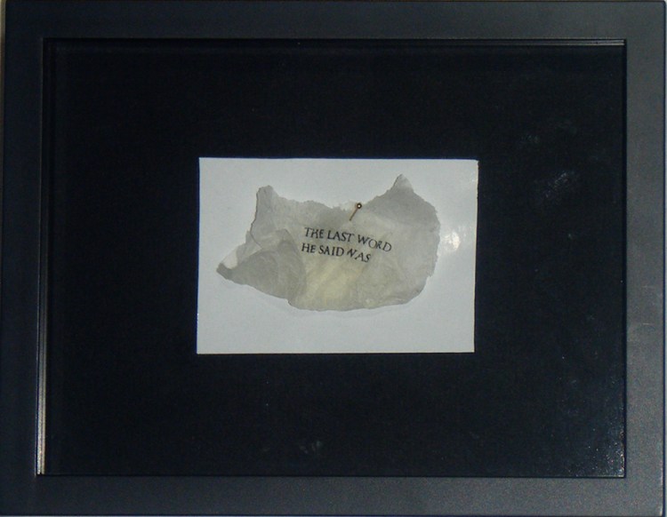 and then I just left (2009) Acrylics, 20×40 cmLeave me here (2009) Cardboard, 2.4×2.4 cmThe last word he said was (2009) Paper, cardboard, frame, 17×22 cm
