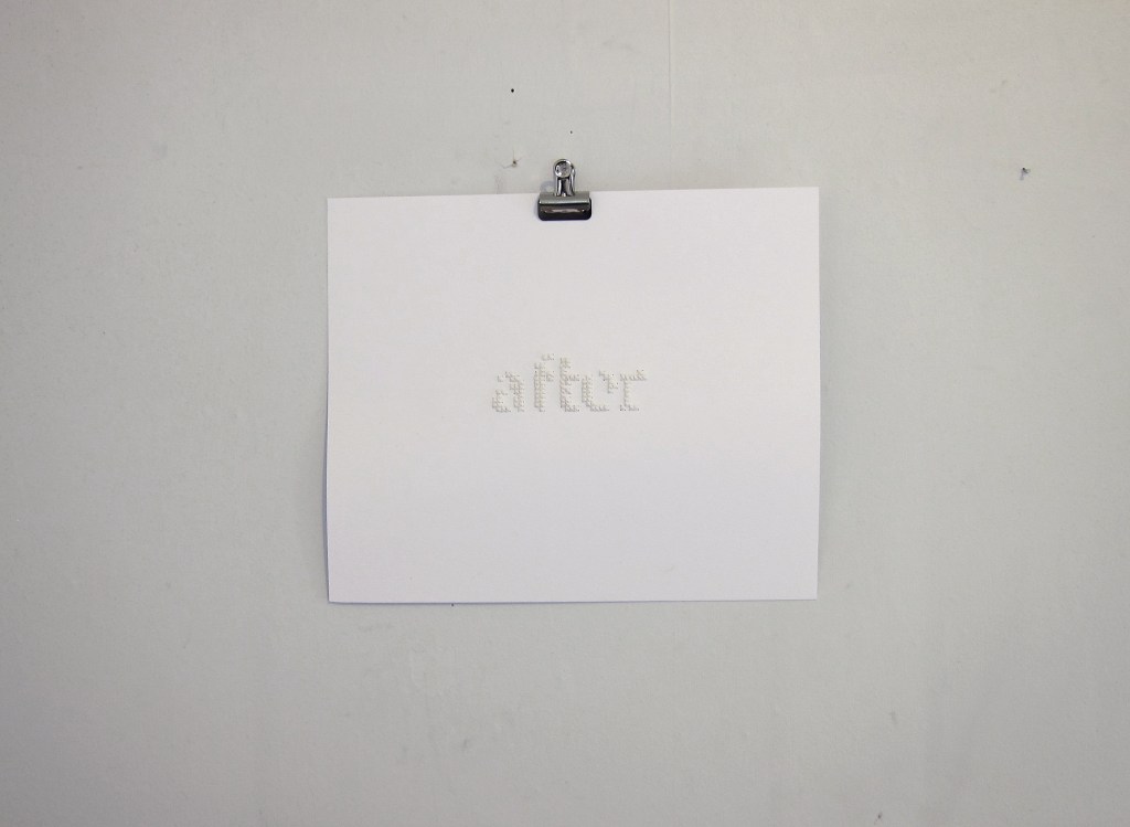 after (II) Cross stitch embroidery on aida, 7.5×5.2 cmmind-set (2017) Acrylics/mixed media on canvas, 60×80 cmeverything. (2017) Watercolour on paper, 42×29.7 cm