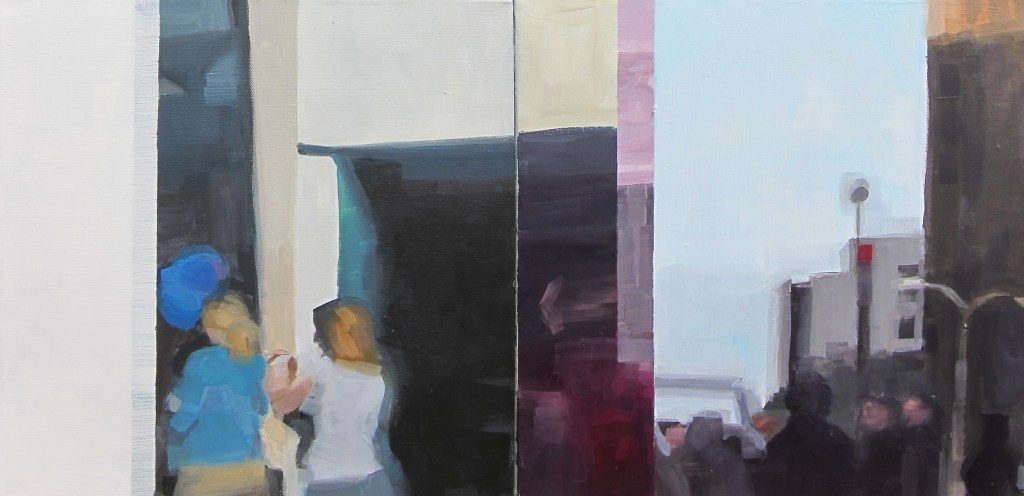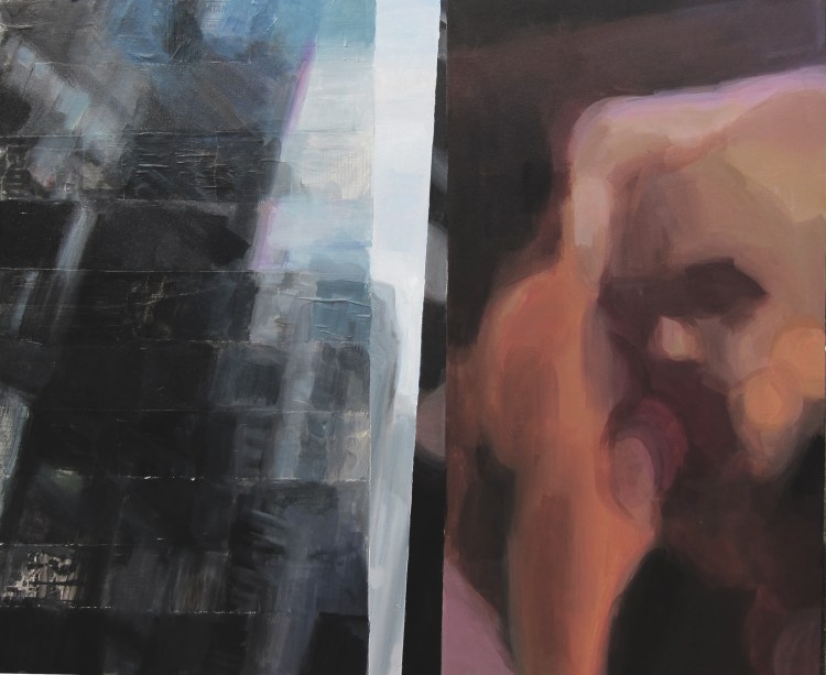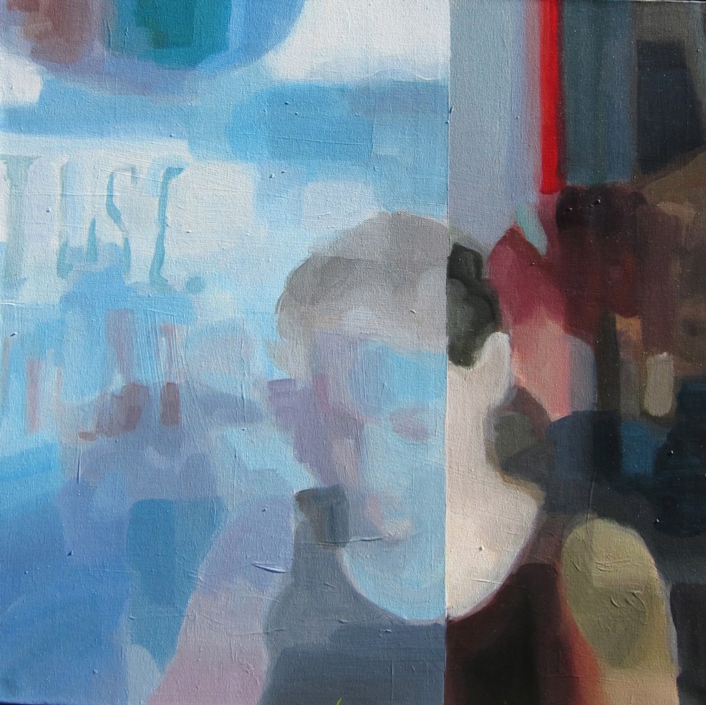 Into nothing I go (2013) Acrylics on canvas, 60×80 cmSuperimposed (2013) Acrylics/collage on canvas,40×80 cmthis could be (2014) Framed embroidery, 30×40 cm