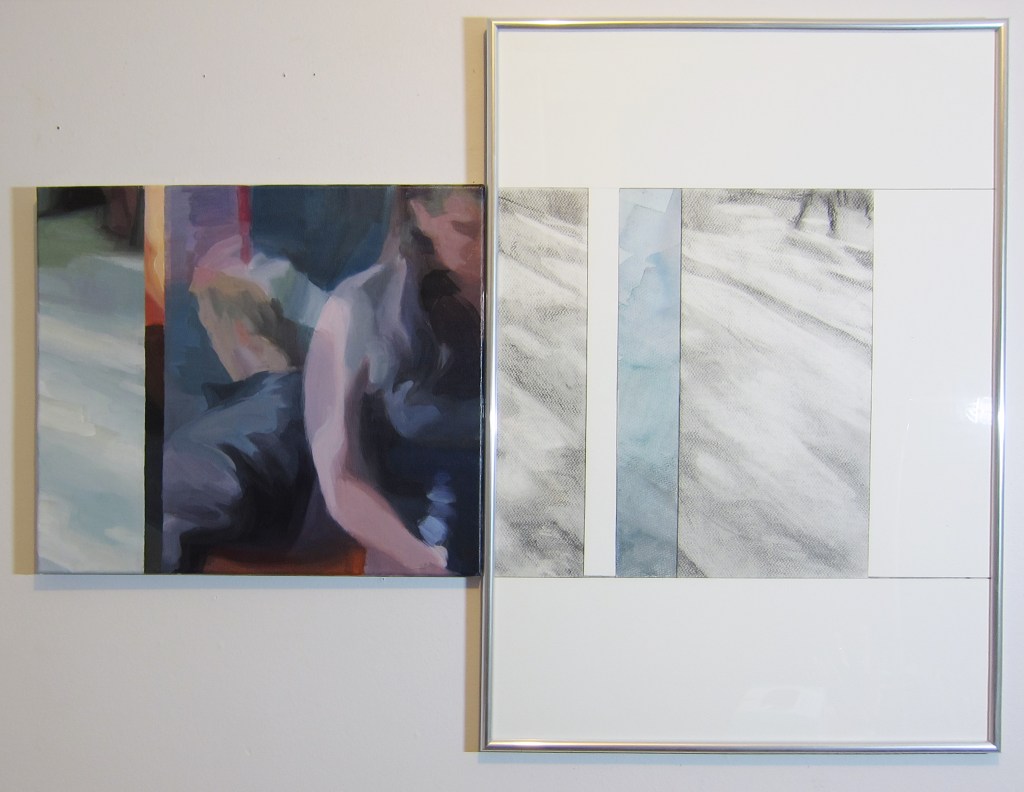 but not completely (2014) Acrylics on canvas, 50×70 cmIf anything (2014) Acrylics/collage on canvas, 70×90 cmcontinued. (2015) Acrylics on canvas; charcoal and watercolour on paper; frame, 70×97 cm