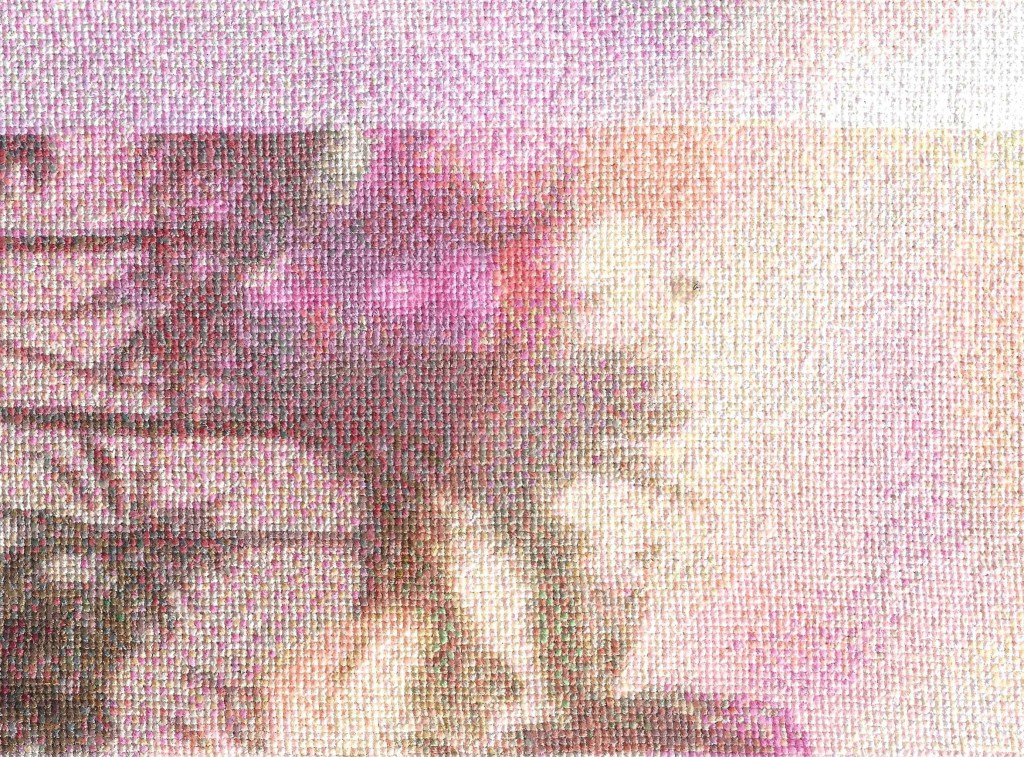 retrace my steps (2019-2020) Acrylics, water soluble pencil on canvas, 40×40 cmthat little by little I will have lost you (I) Acrylics on canvas, 33×24 cmwait, (2020) Cross stitch embroidery on aida, 17×28 cm